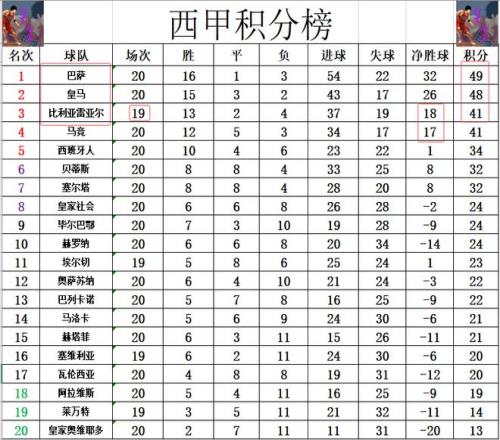 西甲最新积分战报巴萨11连胜被终止下半程刚开始只领先皇马1分