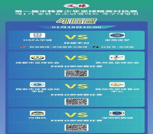 1月10日至20日,由《足球》报和定南县人民政府主办的“462杯”第一届中韩青少年足球精英对抗赛,在江西赣州市定南(国家)青少年足球训练中心举办。本次赛事邀请国内12支顶尖青少年球队和韩国4支精英梯队,赛事年龄段为2011,2012年龄段。为期10天的赛程中,赛事旨在聚焦中韩足球交流,打造高质量赛事,深耕精英青训。