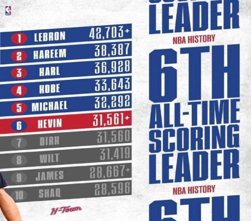 本场杜兰特迎来个人里程碑,他全场得到18分6篮板8助攻1抢断,NBA生涯总得分(31562分)正式超越德克-诺维茨基,升至历史第六位!