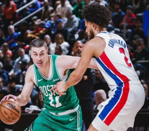 按照此前预期,塔图姆是能赶上常规赛的,有可能是全明星周末后,有可能是3月份,他在去年夏天遭遇跟腱断裂的重伤,恢复比预期快很多。活塞这边,球队老大康宁汉姆也进入东部首发,球迷投票排名第四,球员投票第一,媒体投票第二,场均26分6篮板10助攻1.5抢断,这位21年状元,也在生涯第五个赛季,迈入一线超巨行列。从实力来看,这两支球队一定是东部霸主有力竞争者,这更像是一次东决级别的预演。本赛季此前三次交手,活塞2胜1负,回顾一下本场比赛。开场豪泽就命中撤步三分,哈里斯内突外投,普理查德和布朗给出回应。